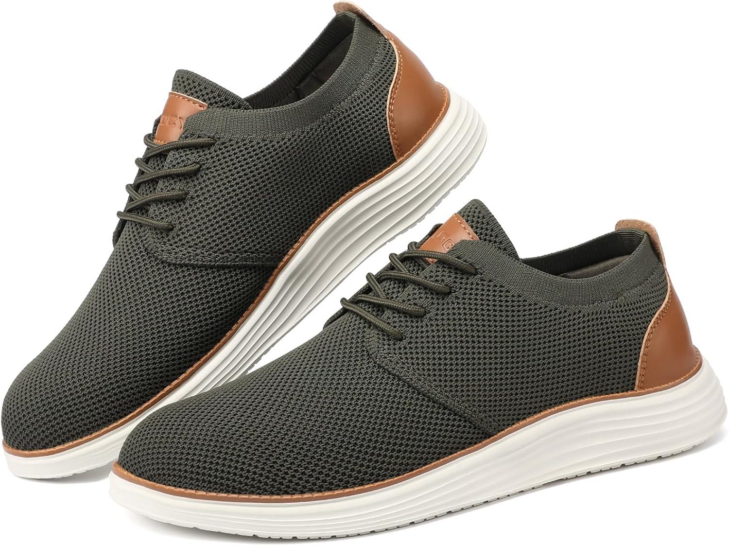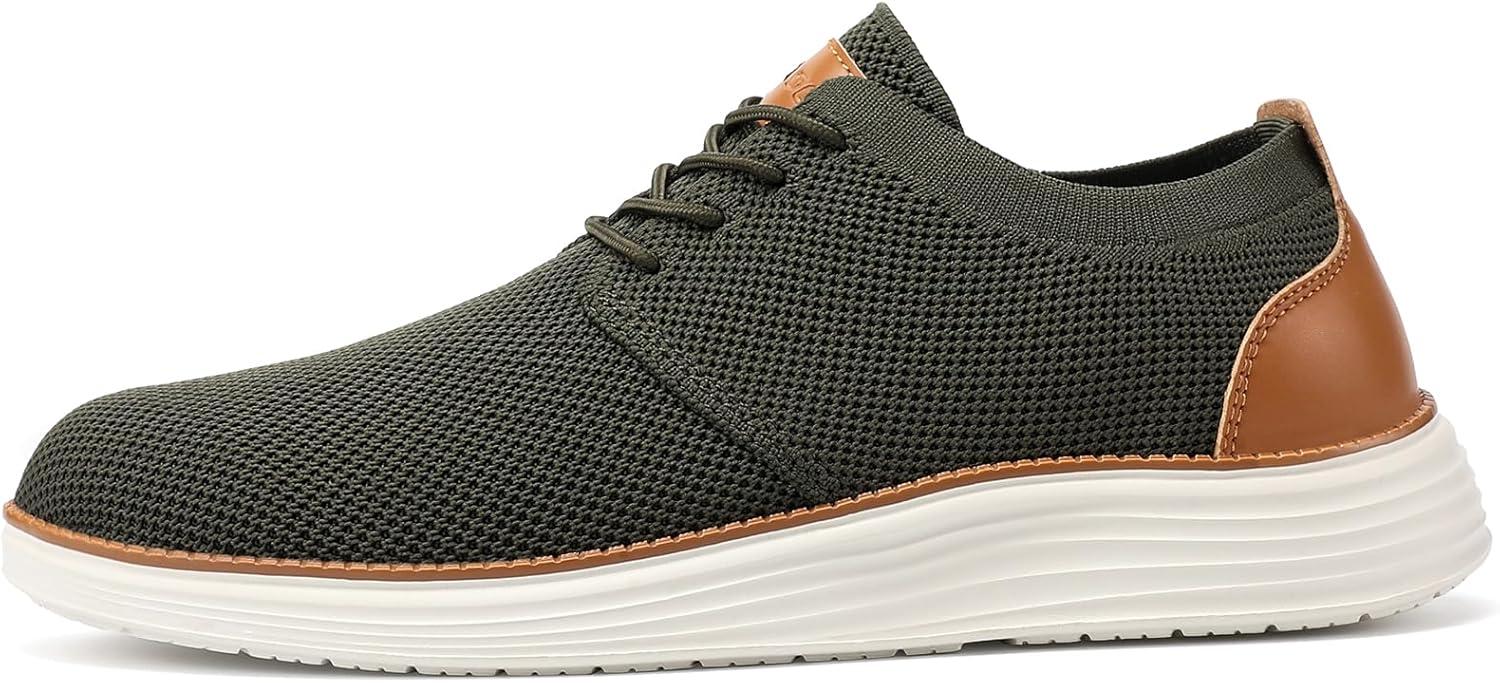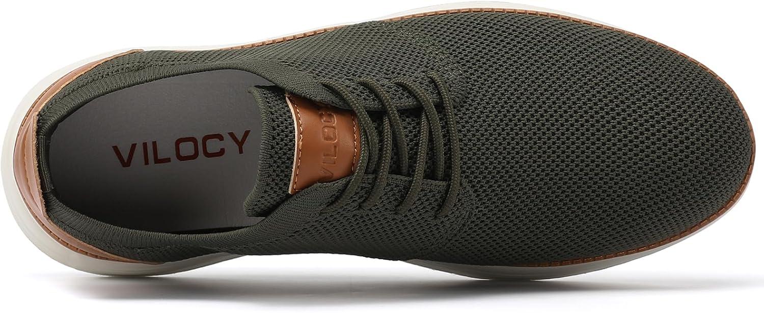 VILOCY Men’s Fashion Dress Sneakers Casual Walking Shoes Business Oxfords Comfortable Breathable Lightweight Tennis(Army Green)