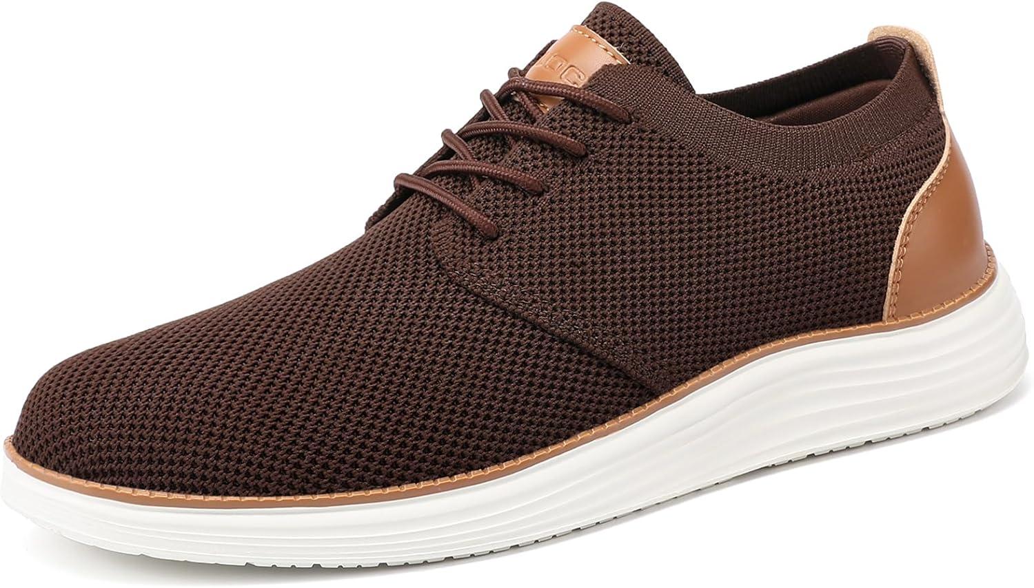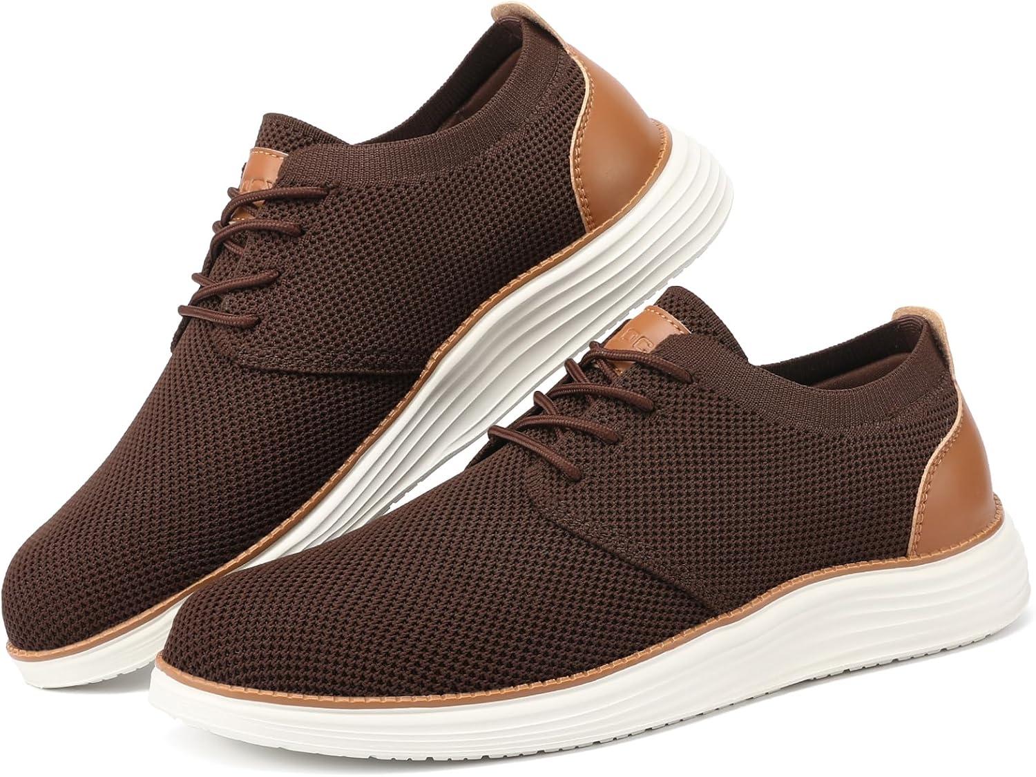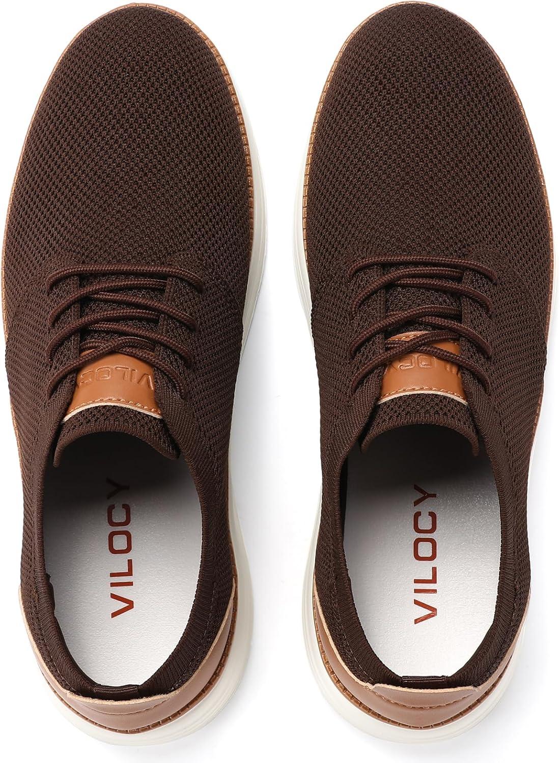 VILOCY Men’s Fashion Dress Sneakers Casual Walking Shoes Business Oxfords Comfortable Breathable Lightweight Tennis(Brown)