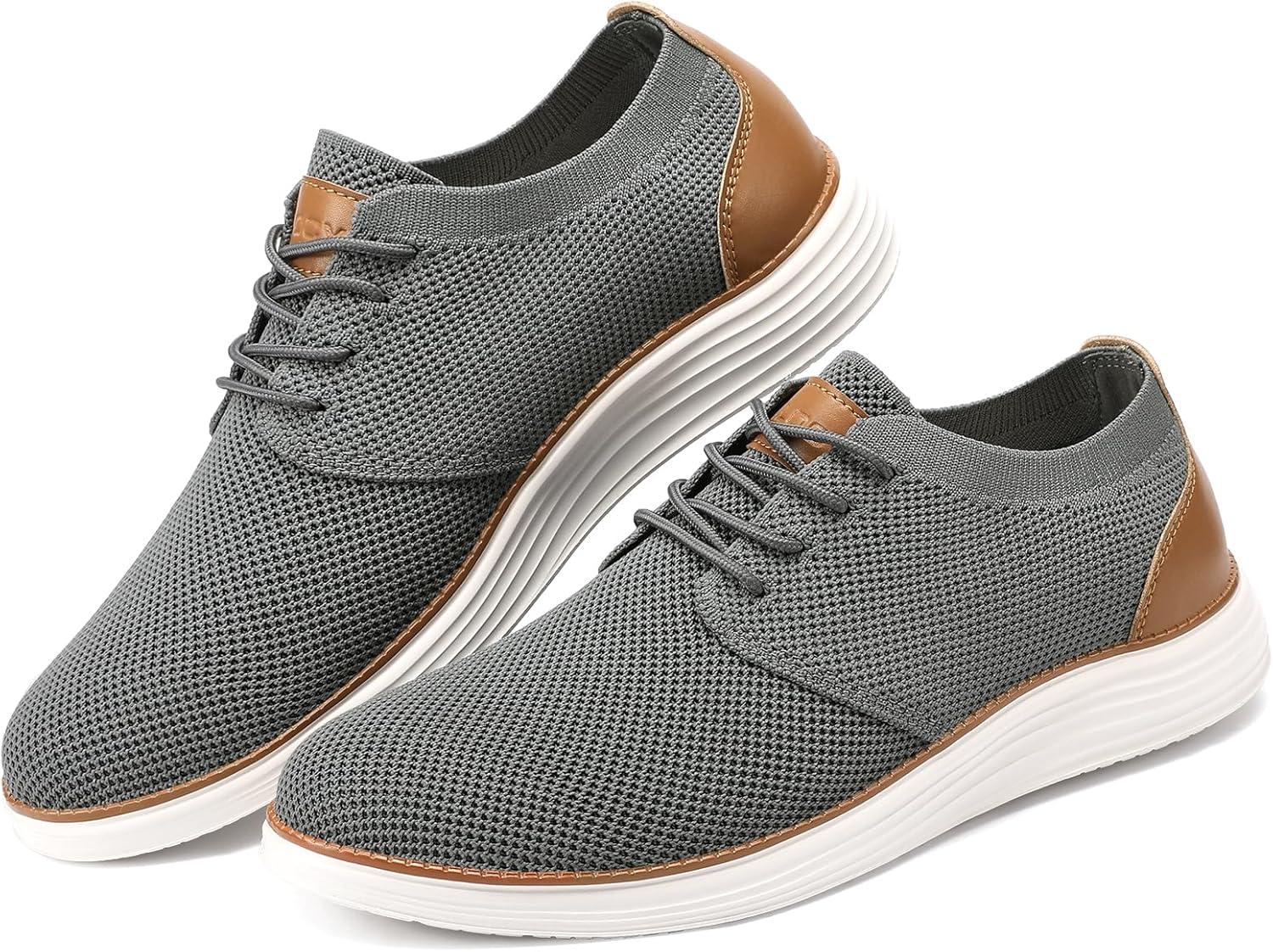 VILOCY Men’s Casual Dress Oxfords Shoes Knit Lightweight Breathable Fashion Sneaker(Grey)